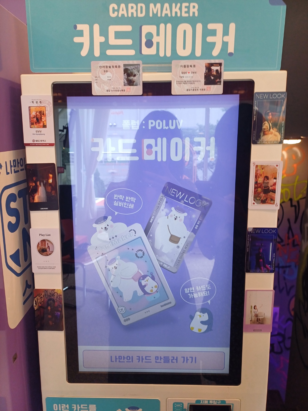 셀럽 파파라치 카페 안에는 즉석으로 카드 및 스티커를 만들 수 있는 기계가 있습니다.